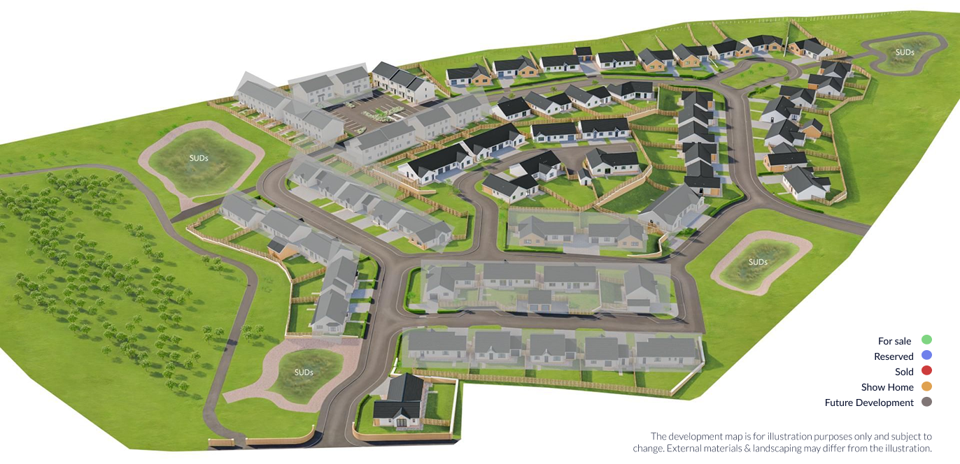 The Morlich combines light, space, and practicality in perfect harmony. A spacious kitchen/dining area opens to the garden through French doors, while the lounge offers a calm retreat. The master bedroom features an en-suite, with two additional bedrooms, a family bathroom, and a utility room completing this beautifully arranged home.